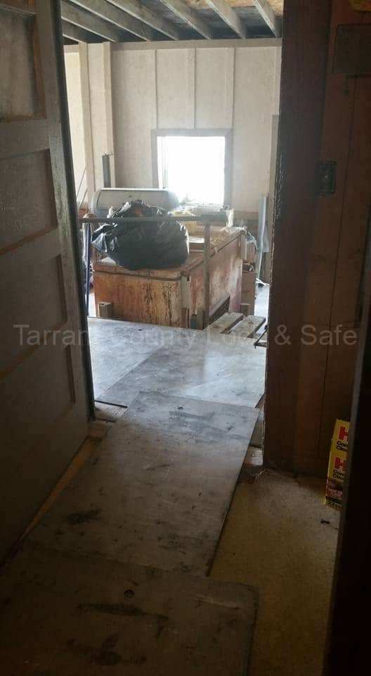 The safe weighed approximately 1,200 pounds. We had to maneuver this large safe out of a very small room, then we had to build a bridge with plates off the rickety wooden porch. Because of these challenges, we planned the move before starting.